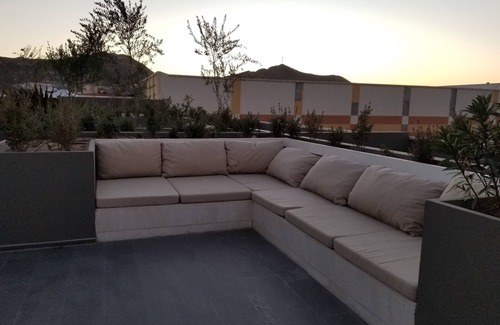 Brand new condo with modern amenities. Living room opens up to open-air patio with BBQ. Private rooftop lounge with jacuzzi. Hotel quality linens and towels. King bed in Master with upgraded bedding. Queen cabinet guest bed in living room. 5-minute walk to Medano Beach, The Office, and other popular Cabo destinations. Wifi and internet TV plus free calls to the US. Concierge and housekeeping services available. No car necessary at this location! Inquire with owner about special rates for August!