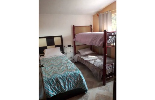 Enjoy a comfortable/warm/casual/pet friendly house, excellent location (15 min Toluca Center, 20 min Int Toluca Airport and 5 min from Carr. Toluca-Atlacomulco). Excellent for workers/executives/families up to 8 members. Recently Upgraded: 3 Bedrooms (1 Single/1 Full Bunk bed/2 Bunk Beds/2 Single under-bunk beds/2 Single Beds) Automatic Garage/Lobby/Living room/Dining room/Kitchen/1.5 Bathrooms/Service Patio/WiFi/SmartTV/USB contacts/CCTV/Private Station/Heater/Grill/Periquera.