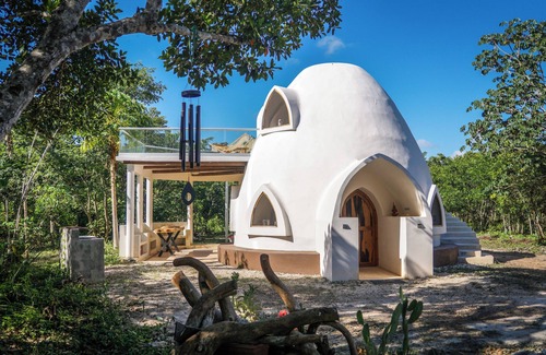 Join in a unique experience, we want you to return to tranquility, to live with the environment that surrounds you and to reconnect with nature. Organic architecture dome. Private and immersed in the Mayan jungle, within an ecological garden of Jackfruit, giving you a feeling of connection, freedom and tranquility. You will be able to sleep in a bed under the dome with a glass roof looking at the stars. Let this wonderful place become yours!