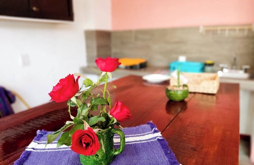 Bienvenido a esta encantadora casa oaxaqueña, situada en el centro de la ciudad. Su excelente ubicación te permitirá explorar los mercados, artesanías y restaurantes tradicionales a poca distancia. Si estás buscando sumergirte en la cultura y la tradición de la región, ¡has encontrado el lugar perfecto para alojarte!
