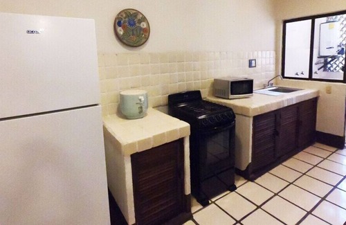 Enjoy real Mexico in this Hotel located in the best area (Hotel Zone) of PV. The pool is incredible as are the immaculate grounds of this hotel. Restaurant and convenience store on site. Rooms are furnished in vintage, traditional Mexican style. Tiled floors, wood counters - attention to detail, brickwork - fully furnished, Kitchen, Living Room, Bedroom, Dining Room - Kitchen with Bar/Countertop and outside patio/lanai. Cleaning included depending on the length of your stay.