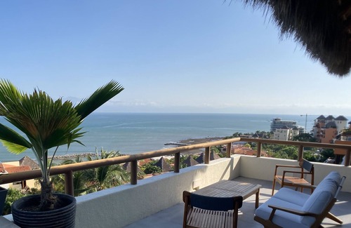 Open the corner sliding glass doors from the great room, let the ocean breezes greet you, and take your coffee or cocktail onto one of two terraces overlooking the bay. Enjoy whales playing during the day and the distant lights of Vallarta at night.