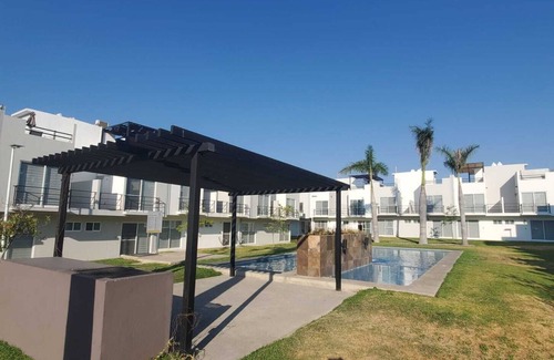 Dentro del residencial puedes disfrutar de áreas verdes, cancha de futbol, basquetbol, área de ejercicio al aire libre y la alberca esta justo en el patio trasero de la casa.