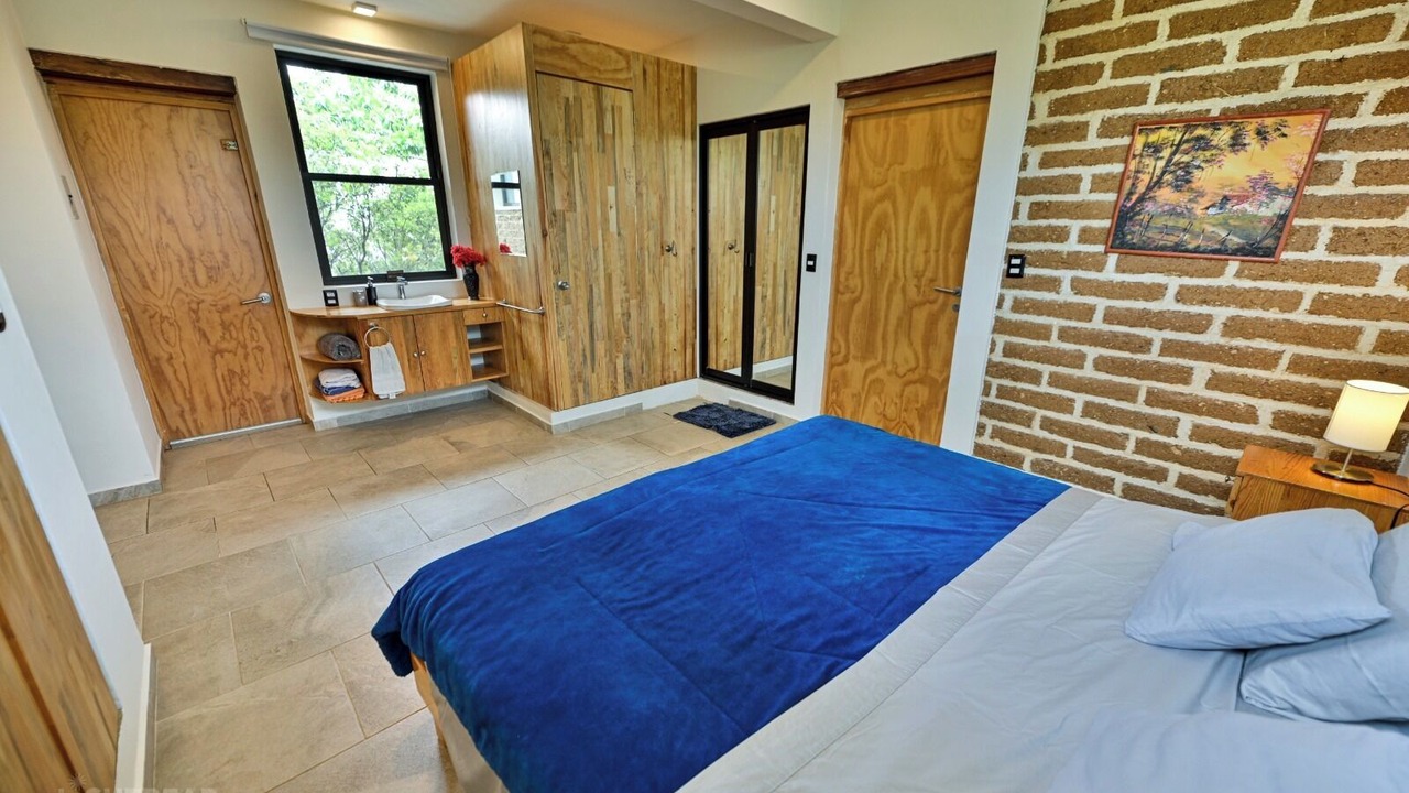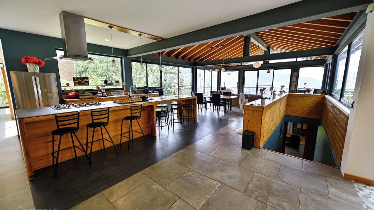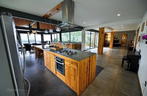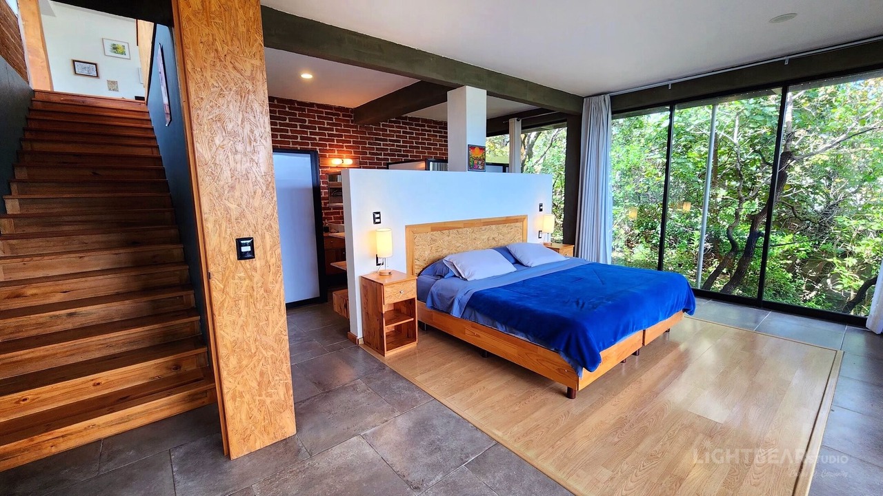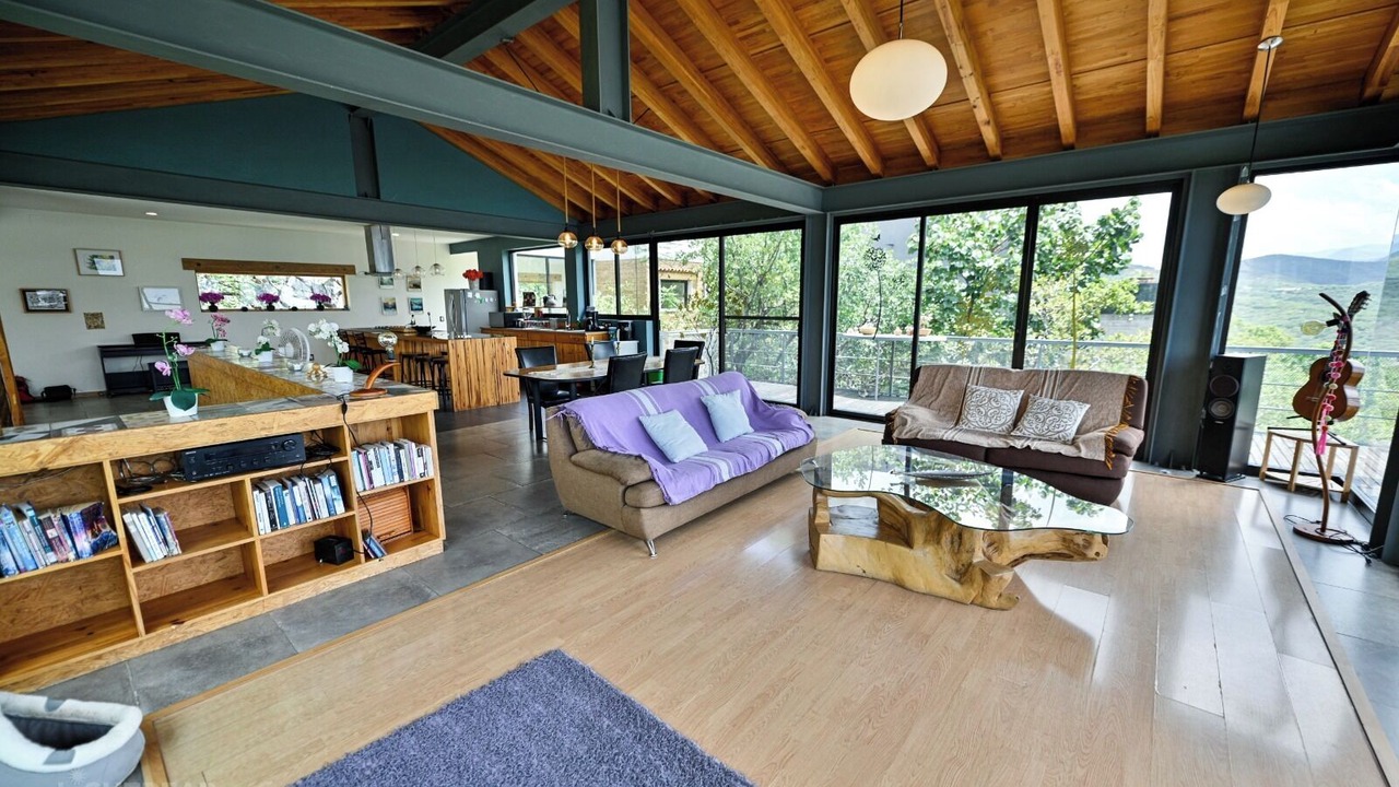 Casa del Bosque, the jewel of Utopía, is a luxury house nestled within the forest and with a panoramic view. Each spacious bedroom comes with its ensuite bathroom, ensuring privacy and comfort. The living spaces are interconnected, flowing from the living room to the dining area and kitchen, out onto an expansive deck that offers views so spectacular they seem to be conjured from dreams. Unique features like a glass floor revealing the forest canopy below, a piano, an amazing kitchen and an excellent sound system, elevate the living experience to new heights. (The house has direct access through the forest to a solar-heated pool with streamer - a current to swim, and hydro massage)